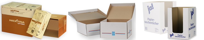 Transportna in prodajna embalaža v različnih kvalitetah valovitega kartona, raznovrstnih konstrukcij in dimenzij v flexo ali offset tehniki tiska za ročno ali avtomatsko pakiranje.